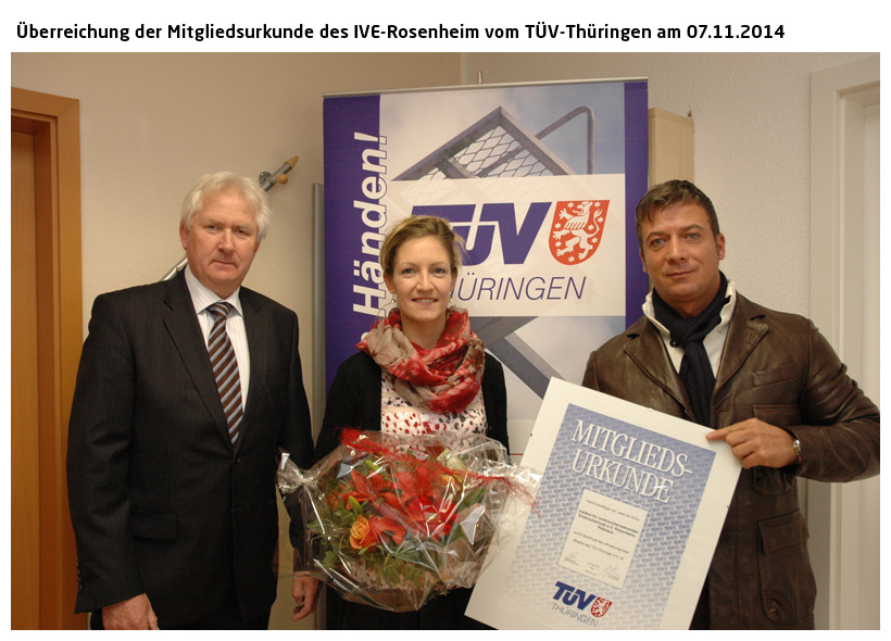 Überreichung der Mitgliedsurkunde des IVE-Rosenheim vom TÜV-Thüringen am 07.11.2014