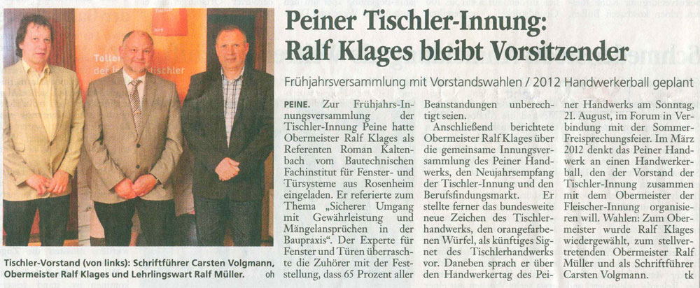 Fachreferent zum Türen-Objekt-Kongress bei der Firma Vomberg am 13.01.2012